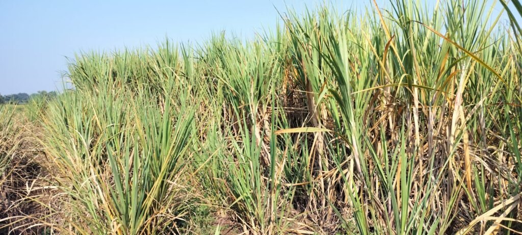 (फोटो -तोडणी अभावी शेतात उभा असलेला२६५ जातीचा ऊस.)